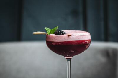 Licht kruidige cocktail met bramen en frambozen op basis van gin.