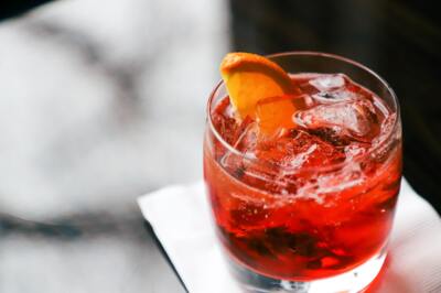 El Negroni es un cóctel italiano fuerte y amargo, hecho con ginebra, vermut y Campari.